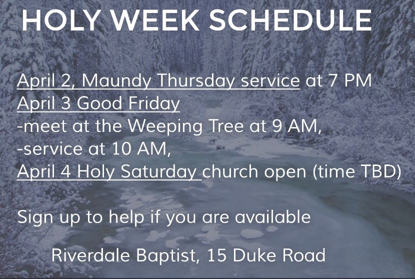 On Friday April 3, the ribbons will be taken down and carried to Riverdale Baptist Church where they will be hung on the cross, prayed for, and held with hope.